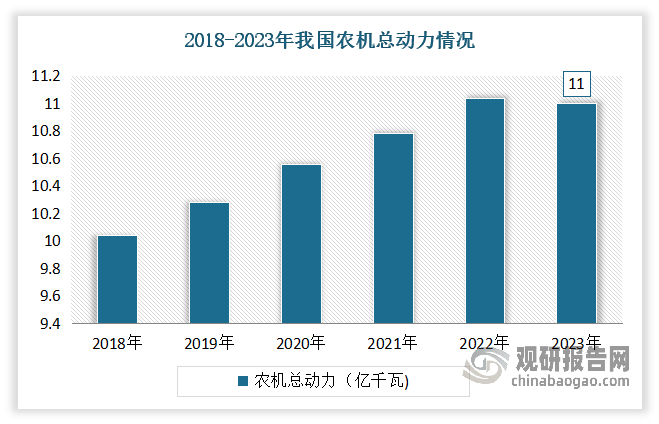 机械总动力持续增加。近年我国农业机械总动力持续增加,到目前曾经成为农业出产中不成或缺的一部门。农人也越来越依赖农业机械进行出产,对于提超出跨越产效率和降低劳动强度有着主要感化。数据显示,
